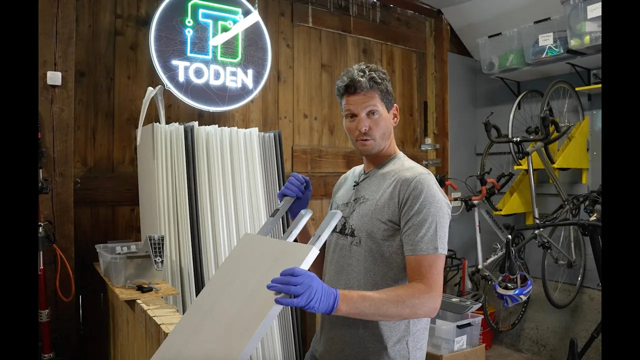 Toden™ provides a product line which can be used individually or as a system. Our brackets support any ideas for garage storage and our thin profile surfaces span up to 48" at max load ratings, which is even usable for an open kitchen shelving look. The modular components of the product line inspires DIY options with unmatched versatility for shoe storage benches, laundry room organization, or the man cave. Toden™ is a different kind of shelving company.