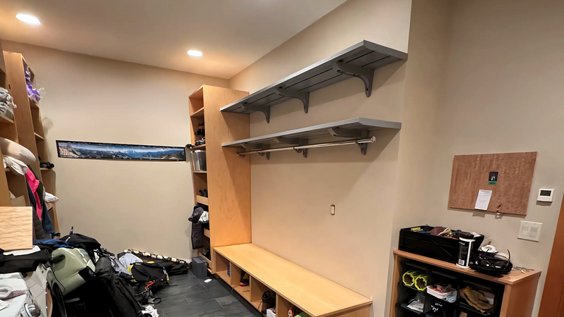 I got these brackets after ordering my shelves with the goal of creating a simple gear closet to hang my wetsuits, jackets and backpacks. If you have the shelves the brackets fit anywhere and can be installed or taken down in minutes.