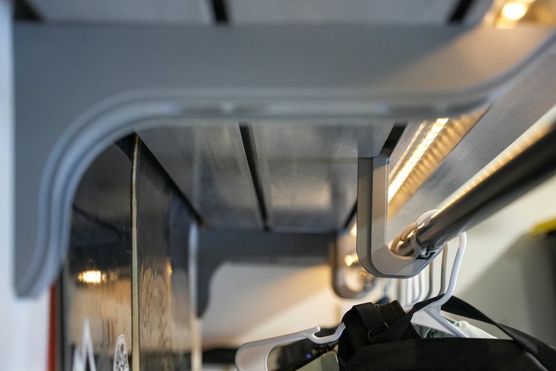 Functional, well thought out design. Game changer for gear closet organization. I am able to hang my packs, helmets and gear, and still have space for a hanging rod for clothes. No other product exists. Love that everything is made out of recycled plastic. All my friends who come over are jealous and comment about how rad my gear closet is. Great work and thank you Toden!