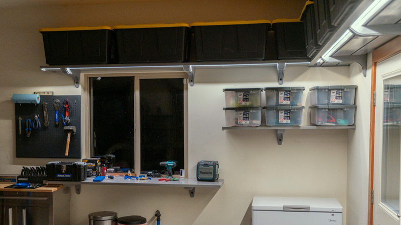 We did a little DIY project in our basement storage room and love the results! The brackets are easy to install, they hold a LOT of weight, and they go together very easily! Consider us impressed!