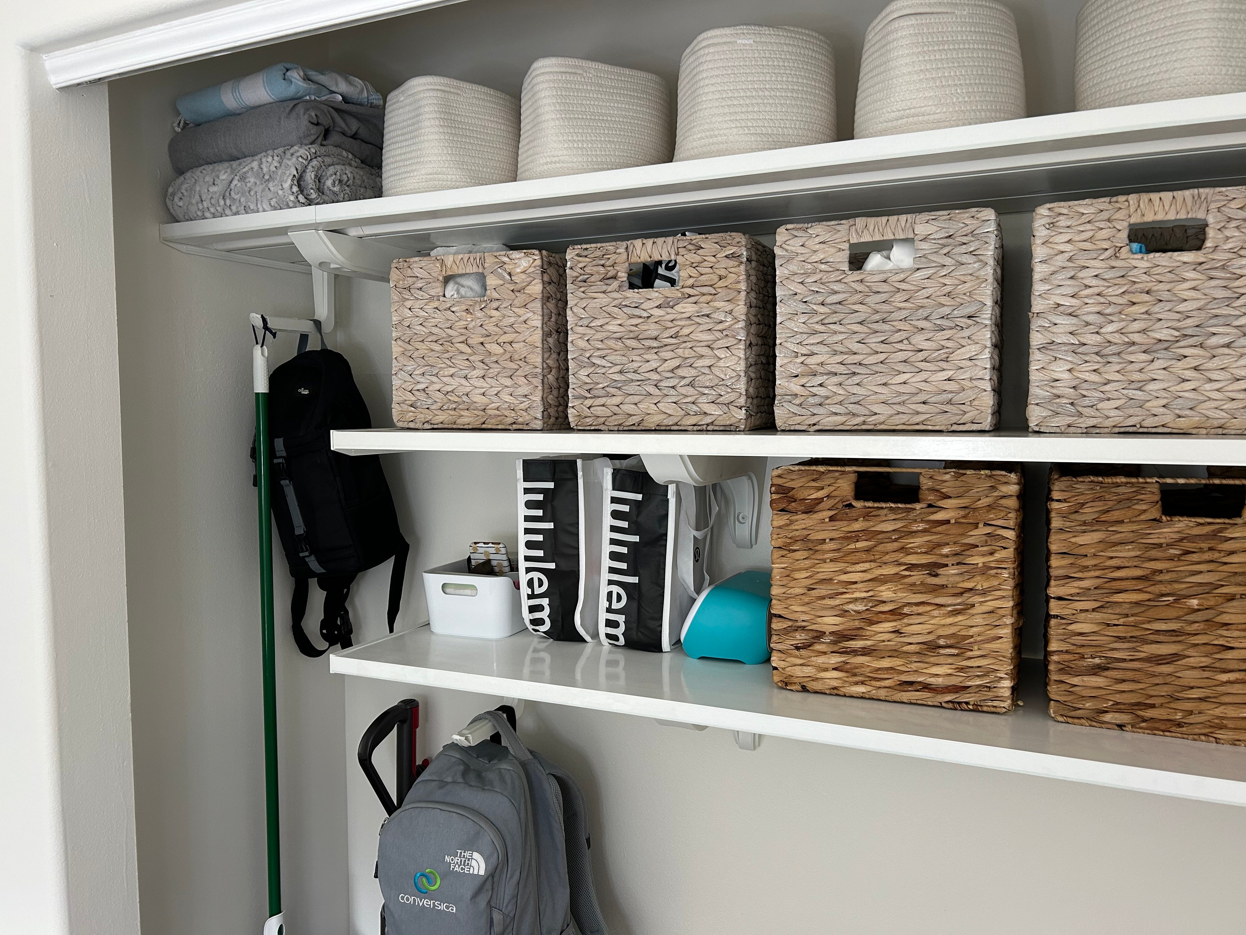 - Linen closets + basket storage